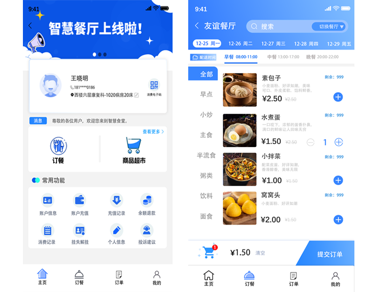 3) 医院病房订餐管理系统从现金管理、营养菜谱编辑、订餐部门各类报表统计、营养分析、备餐管理、送餐管理、餐车管理、扫码支付、无卡充值、微信充值、微信订餐,微信订单查询等都非常明晰.极大的提高了患者订餐的效率和满意度.
